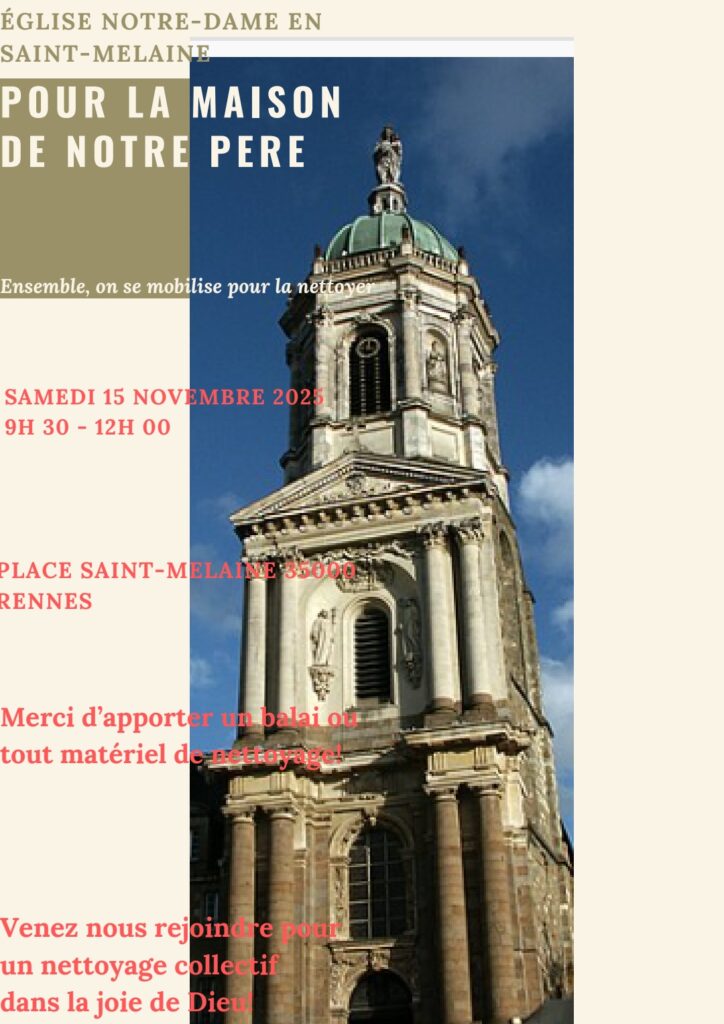 Entre 9h30 et 12h, le samedi 15 novembre, chacun vient à l’abbatiale avec un balais ou autre matériel de nettoyage pour faire un grand ménage dans la joie de Dieu !
