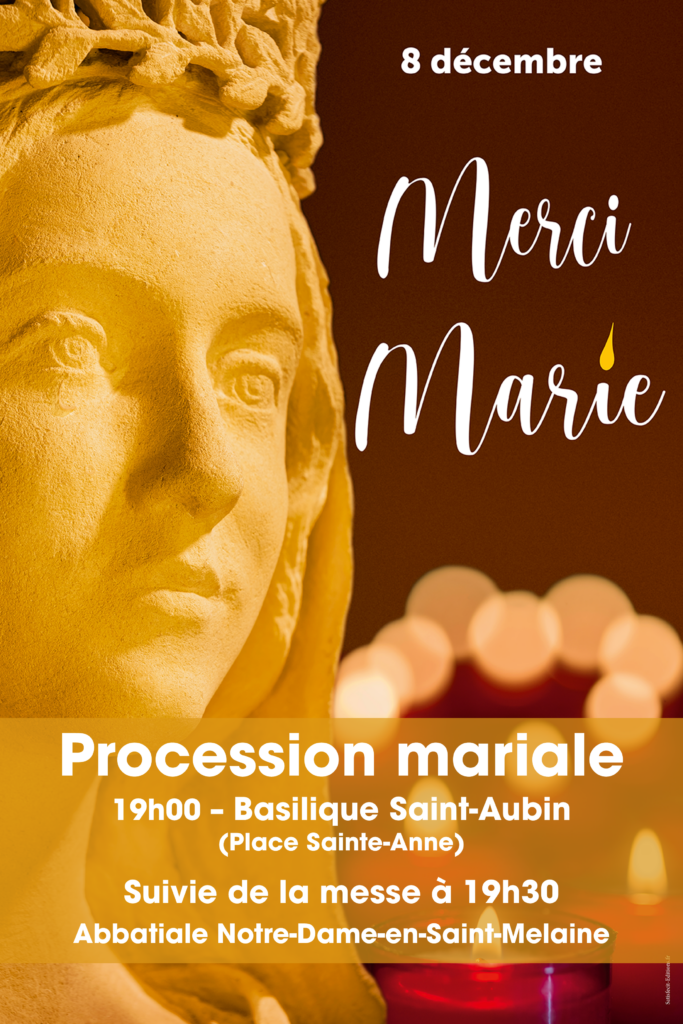 Nous nous retrouverons le lundi 8 décembre à 19h, à la Basilique Saint-Aubin, pour une procession mariale, avant de rejoindre ensemble l’abbatiale Notre-Dame en Saint-Melaine.