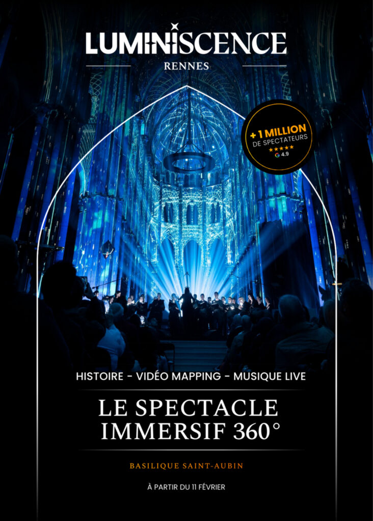 Après avoir émerveillé plus d’un million de spectateurs dans plusieurs villes à travers le monde, LUMINISCENCE arrive pour la première fois en Bretagne. À Rennes, la Basilique Saint-Aubin devient le décor d’un spectacle immersif à 360°, mêlant vidéo mapping monumental, narration et musique live. Une expérience sensorielle qui invite le public à redécouvrir l’un des édifices majeurs de la ville.