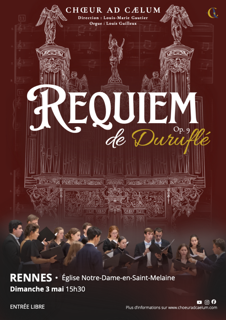 Dès sa création en 1947, le Requiem de Maurice Duruflé s’impose comme un chef-d’œuvre de la musique française du XXe siècle. Son originalité provient des thèmes grégoriens traditionnels de la messe des morts que le compositeur utilise tout du long des neuf mouvements. C’est une œuvre bouleversante qui saisit l’auditeur au plus profond de son âme et l’amène à vivre une réflexion musicale autours de la mort…et de la vie.